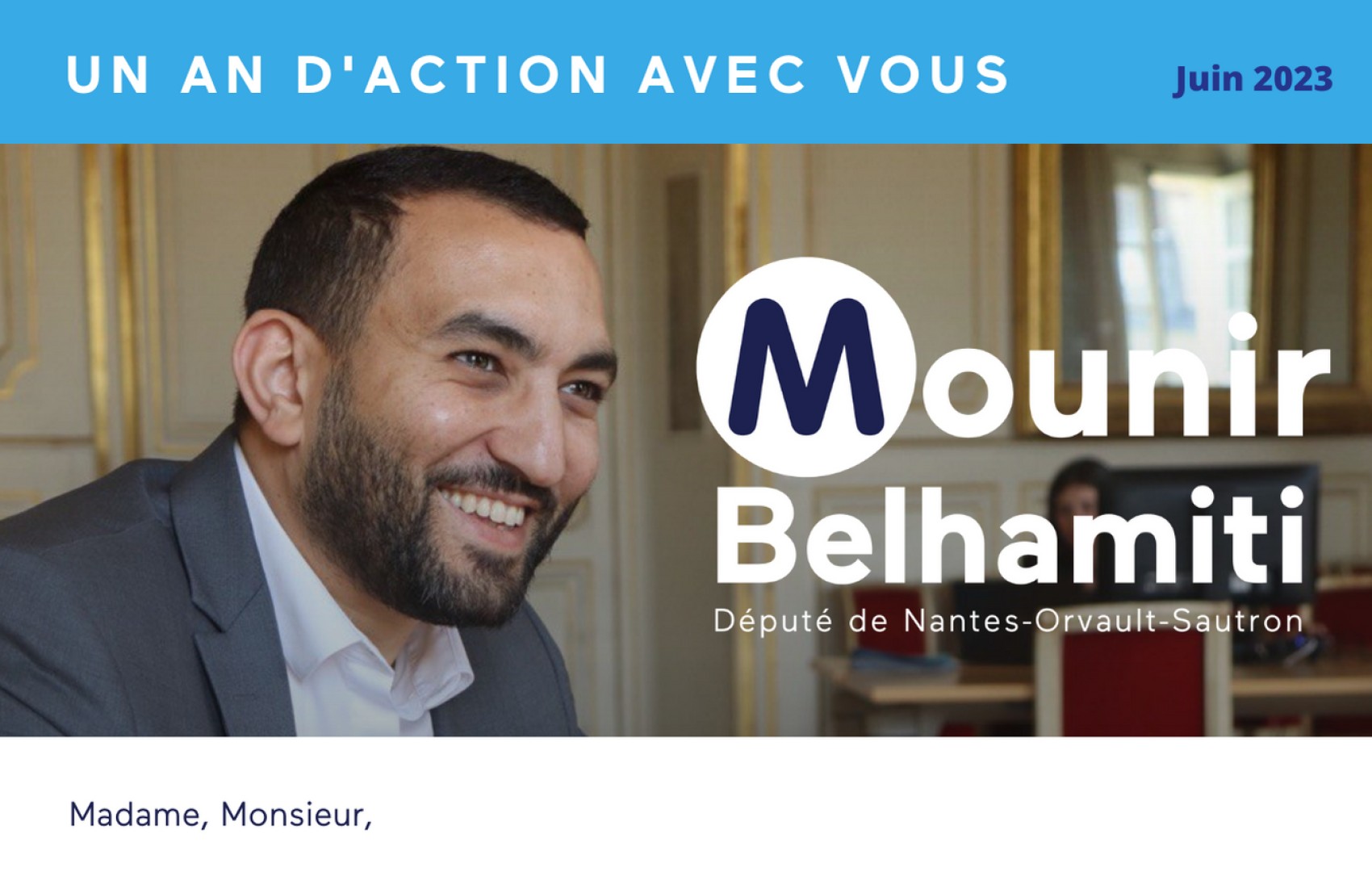 Retrouvez le bilan d'un an d'action de Mounir Belhamiti avec vous.
